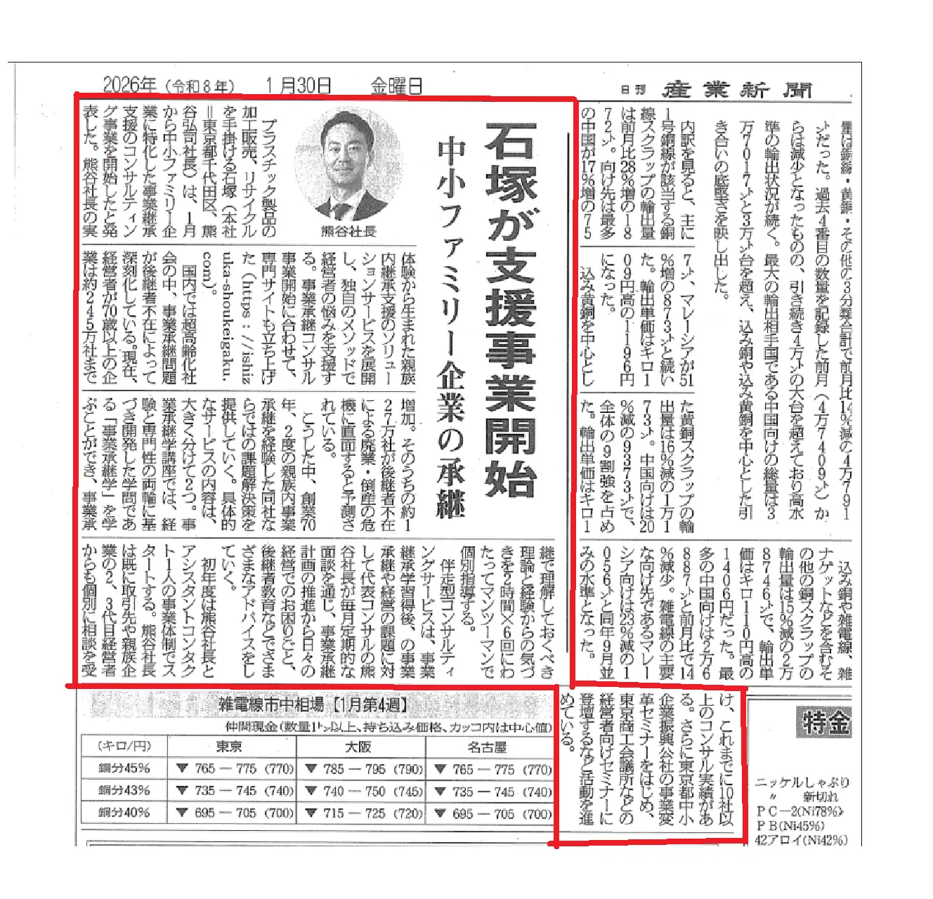 日刊産業新聞掲載報告2026.1.30